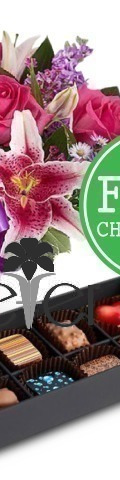 With its colourful display of pink and purple blooms, the Bubble Bright Bouquet is the perfect flower gift for mothers, sisters, daughters, wives, best friends, and loved ones. A popular choice for Mother's Day, birthdays, and Valentine's Day, it includes 6 pink roses, 5 pink stargazer lilies, purple delphiniums, purple asters, and seasonal green leaves. This Mother's Day this beautiful arrangement is complimented with a free box of 10 pieces of assorted chocolates.