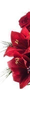 6 x Red Amaryllis, 3 x Red Roses, Red Hypericum Berries, 2 x Pine Cones