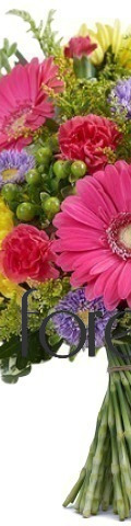 With its bold and vibrant display of yellow football chrysanthemums, hot pink gerbera, orange carnations, purple Matsumoto asters, and green hypericum berries, our Summer Sentiments Bouquet never fails to impress. This best-selling Mother's Day flower arrangement is available in a vase or bouquet wrapping.