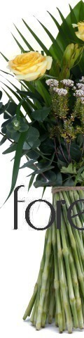 Surprise someone special today with our Tropical Touch arrangement. A delightful arrangement of traditional roses and exotic foliage, it includes 3 long stemmed yellow roses, green palm leaves, herbaceous eucalyptus, and a handpicked selection of seasonal greenery. A symbol of friendship, happiness, loyalty and joy, it is the perfect flower arrangement for any occasion.
